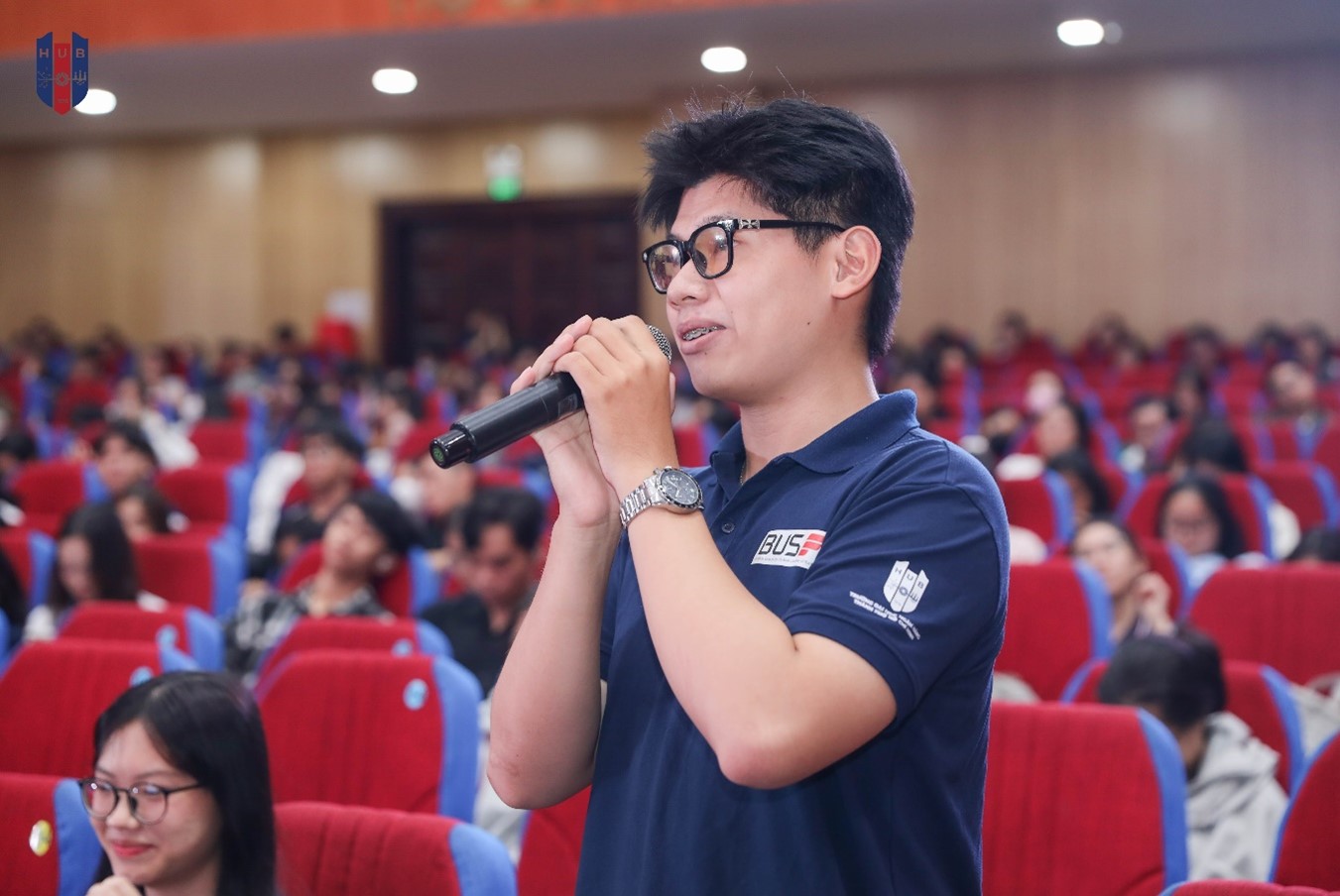 Tại hội thảo, các bạn sinh viên cũng hào hứng tham gia phần chia sẻ, đặt câu hỏi, thảo luận về quản lý tài chính cá nhân với Ths. Ngô Thành Huấn – CEO Công ty Cổ phần Tư vấn Đầu tư và Quản lý Tài sản FIDT, Thành viên Hội đồng chuyên gia Hiệp hội Tư vấn Tài chính Việt Nam (VFAC) và các thầy cô của Khoa Tài chính – HUB.